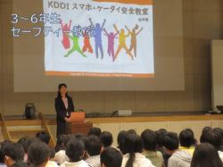 10月25日(土)に土曜授業公開を行いました。3~6年生を対象にKDDIの方を講師にお招きし、セーフティ教室を行いました。SNSを主としたトラブルの原因とそのトラブルによって起こる様々な影響について、動画を見ながら分かりやすく話していただきました。児童同士でなぜトラブルになってしまったのかを話し合う時間もあり、映像の中だけではない自分事として捉えている様子が見られました。引き続きSNSの使用について学校でも指導していきます。 本日は大勢の保護者の皆様、地域の皆様にご参加いただき、ありがとうございました。今後とも、本校の教育活動のご支援・ご協力を賜りますよう、よろしくお願いいたします。