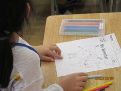 8日(水)にいろいろな形を組み合わせてオリジナルのモンスターを作りました。どんな形をいくつ使ったか友達に紹介することができました。