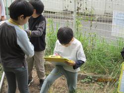 14日(火)に青柳小学校にいる生き物を探しに行きました。どんな生き物がどこにいるかワークシートに予想を書き、多くの生き物を友達と見つけることができました。