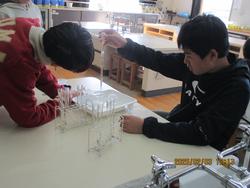 「水溶液の性質を調べよう」の学習では、水溶液の中に溶けている物質を蒸発させることで取り出し、溶ける前の状態との違いを比べました。少し危険な液体も扱うため、安全を第一としながら一生懸命取り組んでいました。