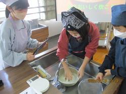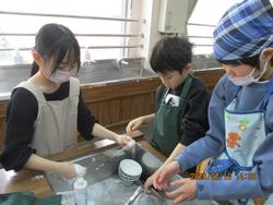 3学期1回目の調理実習はお米の炊き方の学習です。お米の研ぎ方や水の分量に注意をはらい、お米を炊きました。耐熱ガラス鍋を使い、ふだんは見ることのないお米の変化に子供たちはびっくりしていました。自分たちでつくったご飯の味はどうだったかな?