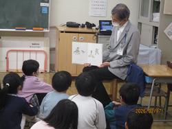 2月25日に内田ふみ子先生による読み聞かせ特別授業を行いました。「まぬけなトッケビ」という韓国で古くから伝わる妖怪にまつわる語りと、「ふしぎなやどや」という絵本を読み聞かせしていただきました。子どもたちは、お話の内容に興味をもちながら聞くことができました。