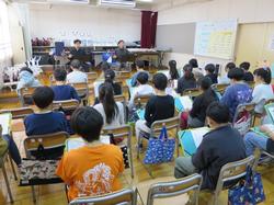2月20日(金)に、講師の東音山田卓先生と杵屋弥五次先生をお招きして、第2回長唄教室を実施しました。4年生は前回に引き続き「雛鶴三番叟」、5年生は、音楽の学習で鑑賞した「雨の四季」を教えていただきました。質問コーナーでは、「たくさんうたっても声がかれないのはなぜか。」「うたったことがある長唄で一番難しかった曲は何か。」「三味線を演奏していて楽しいと思うのはどんな時か。」「一番古い長唄は何か。」「どんなところで演奏会を聴くことができるのか。」などの質問が出ました。
