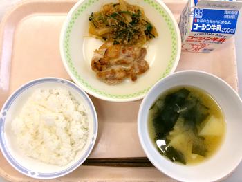 ご飯 鶏の生姜焼き 大根と春雨のピリ辛炒め みそ汁 牛乳 |