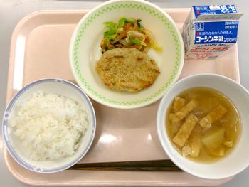 ご飯 鶏のつくね焼き 野菜とこんにゃくのあえ物 みそ汁 牛乳 |