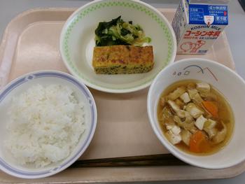 ご飯 ひじき入り卵焼き キャベツとわかめの甘酢あえ けんちん汁 牛乳 |