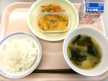 ごはん 魚のみそマヨネーズ焼き じゃこ入りサラダ みそ汁 牛乳 |