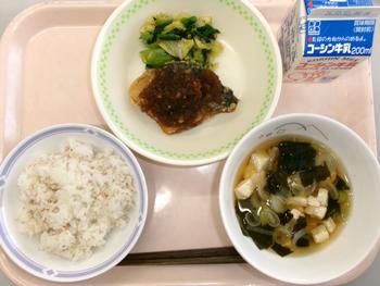 わかめご飯 鶏の梅肉焼き 野菜のごまあえ 大根のそぼろ煮 牛乳 |