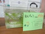 年長組で育てていたメダカは保育室から移動し、今はお知らせコーナーで過ごしています。