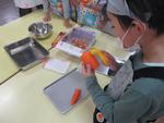 先生からピーラーや包丁を使う際の注意点をよく聞いて、真剣な表情で取り組む姿が印象的でした。