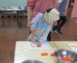 子どもたちは、サツマイモを洗うところから、ニンジンや玉ねぎの皮むき、包丁での野菜切りに挑戦しました。