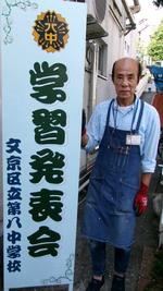 看板完成 用務主事の竹内さんが、学習発表会と卒業式の看板を作ってくださいました。非常に手の込んだ作品で、飾りや勘亭流の文字など、まるで芸術作品のようです。卒業式の看板には、桜の花びらが濃淡をつけて描かれており、華やかさが際立っています。学習発表会の看板には艶消しの処理が施されており、写真を撮っても光が反射しません。竹内さんは、生徒と保護者のみなさんのために心を込めて作ってくださいました。(9/24 11:30更新) |
