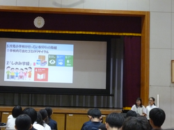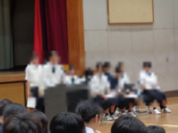生徒会役員選挙 後期の生徒会役員を決める選挙が、6時間目に行われました。今日までの間、候補者とその応援責任者は、朝の登校時間や給食の時間に選挙活動を行ってきました。今日は全校生徒の前で自身の公約を話し、生徒会活動への意気込みを伝えてくれました。 |