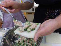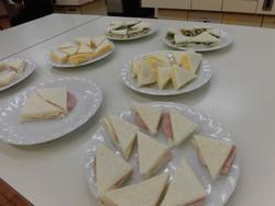 C組授業の様子(家庭科) 家庭科では今年度二回目となる調理実習を行いました。今回のメニューはサンドウィッチ(たまご・ツナきゅうり・ハムチーズ)、コンソメスープです。前回よりも手順や扱う調理器具が増えたので手順書をよく確認しながら進めていきます。 授業の最後に各班ごとに美味しくいただきました。校長先生と副校長先生にも食べていただき、「おいしい!」とのコメントをいただきました。(9/24 15:00) |