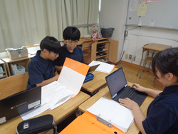 C組授業の様子(国語) 夏休みも明け、C組でも通常の授業が始まっています。国語の時間では、夏休みの日記を基に学習を進めています。自分で夏休みの日記を一日分選び、文章の書き方のポイントや正しい日本語で書くことを学びながら、タブレットに入力しました。多くの生徒が充実した夏休みを過ごしていたようです。(9/4 10:00更新) |