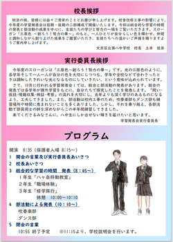 10月土曜授業 学習発表会1・オープンキャンパス(学校説明会)のお知らせを公開しましたので、ご覧ください。(9/30 11:55 更新)