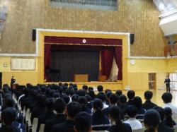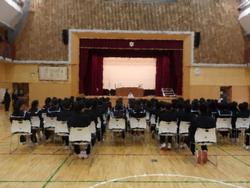 本校では全校生徒が青少年赤十字メンバーとして登録されます。講師の方のお話や誓いの言葉によって、青少年赤十字メンバーの一員であることの意識を高めることができました。