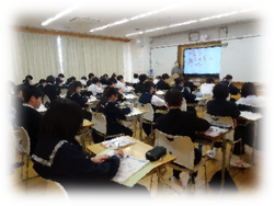 2学年では、5月に実施する防災宿泊体験のガイダンスを実施しました。非常事態が起き、実際に避難所で生活することになった場合の飲食の量やその生活について説明をし、生徒たちは「大変だぁ」と声を出して、真剣に耳を傾けていました。体験日は学校に宿泊するだけでなく、消火器訓練や災害時に活用できる術などを学んでいく予定です。今後、しおりを配布し、当日に向けて準備をしていきます。