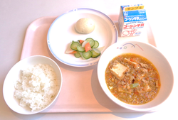 12月18日のメニューは、ごはん、厚揚げのそぼろ煮、大根の浅漬け、かぼちゃまんじゅう、牛乳でした。文京区では和食に親しむよう、月に1回「和食の日」を実施しています。今回の和食の日のテーマは和菓子です。和菓子も和食と同様に自然の美しさや移ろいを表現しています。特別な思いや行事との関りが深いお菓子があるのも和食と同様です。