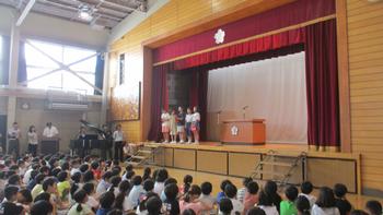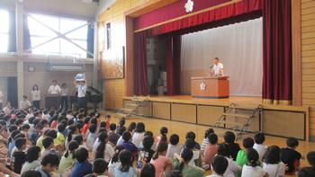 長い夏休みが終わり、久しぶりの登校です。元気いっぱいに2学期のスタートを切ることができたことを、嬉しく思います。校長先生からは、言葉のもつ力「言霊」についてのお話があり、改めて言葉の使い方について見直すきっかけとなりました。代表児童の挨拶からは、2学期への決意が感じられ、みんなの気持ちも一段と引き締まりました。行事も盛りだくさんな2学期を、みんなで力を合わせて楽しく過ごしていけたらと思います。