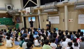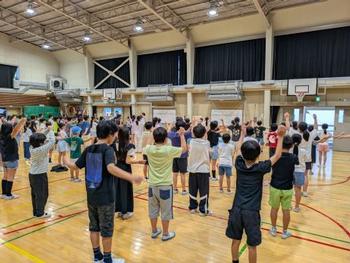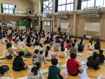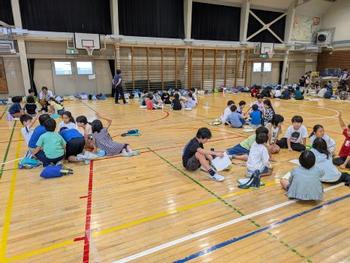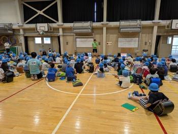 片付けが終わったら体育館に向かい、朝会を行いました。