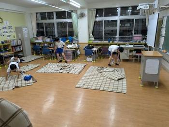 自分たちで教室の掃除をし、毛布を敷いて準備しました。