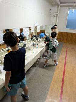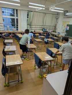 朝の洗顔をした後、すぐに教室の片づけをしました。