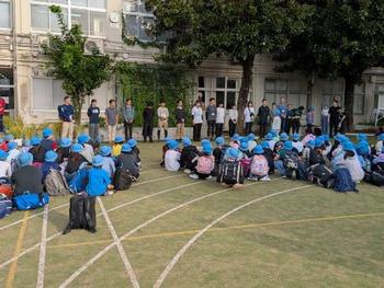 気持ちのよい風が吹く晴れた秋の日に、5年生八ヶ岳移動教室の出発式が行われました。