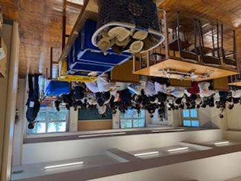 朝会をして朝食を食べてお部屋の清掃を行います。