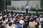 3年生が10月6日(月)と10月9日(木)にブラインドサッカーの体験をしました。ブラインドサッカーの駒崎広幸選手によるパフォーマンスを見たり、アイマスクを着けてガイド役の指示を頼りに音が鳴るボールを蹴ったりする活動をしました。視覚障害の有無にかかわらず、誰でも楽しめるブラインドサッカーの魅力をたくさん感じることができた、貴重な時間になりました。