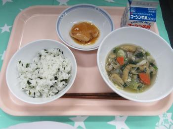 4月10日(金)バランスよく食べよう 牛乳・わかめごはん(1年生おにぎり)・鶏肉の照り焼き・新ごぼうのけんちん汁 給食は、赤・黄色・緑の食べ物をバランスよく使って作っています。 赤の仲間は、筋肉や血液をつくるもとに、黄色の仲間は、エネルギーのもとになります。緑の仲間は、体の調子をととのえる働きがあります。 赤・黄色・緑の食べ物を意識して、好き嫌いなく食べられるようになってほしいと思います。