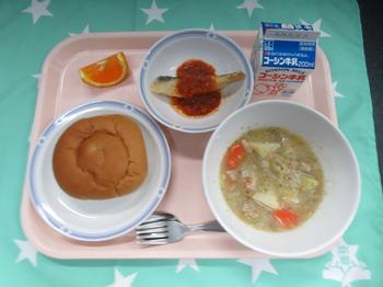 4月13日(月)春キャベツ 牛乳・黒砂糖パン・めだいのトマトソースかけ・春キャベツのポトフ・でこぽん 今日のポトフには 春キャベツを使いました。 キャベツは年中ありますが、今の季節のキャベツは柔らかくておいしいです。 ジャガイモ・にんじん・豚肉と スープで煮ました。 洋風の煮物なので、スープよりも汁が少ないです。 教室では、配膳に苦労している児童もみかけました。 |