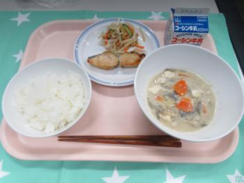 4月17日(金)和食の日 牛乳・ごはん・鰆の西京焼き・切干大根 のパリパリ和え・ごま豚汁 今日は「和食の日」です。 文京区では月に1回 世界文化遺産になった和食を 伝えていくために 和食の日を設けています。 春の魚の鰆を醤油と酒の下味をつけて 西京みそと赤みそ・砂糖・みりんで作ったみそを一切れづつ塗り ふっくらと焼きました。 調理師さんがとても頑張ってくれました。 気温の変化で 体調を崩している方も多くみられます。 きちんと食べて、きちんと休みましょう。 |