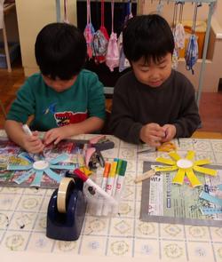 さらに、1年生が用意してくれた輪投げやコマ回し、手作りのぬりえなどのコーナーでお兄さんお姉さんと一緒に遊びました。