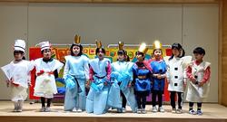 年長すみれ組は、劇遊び「えがおのスパイス」、歌「南極にいこう」「ともだち賛歌」、合奏「すみれぐみメドレー」をしました。友達と気持ちを一つにして役になりきり、自信をもって発表する姿が見られました。