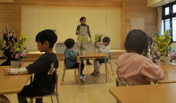3月17日(火)に、年長すみれ組がわくわく生け花を行いました。これまで3年間、園長先生に生け花を教えていただき、修了式前日が最後の回でした。