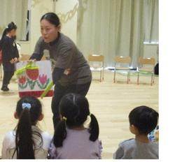 「おむすびころりん」では、子どもたちも一緒に「おむすびころりんすっとんとんと」と歌を口ずさむ姿が見られました。