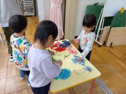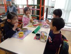 泥粘土で遊んだり、前日にみんなで作ったアイスを昼食後に食べたりすることを楽しみました。