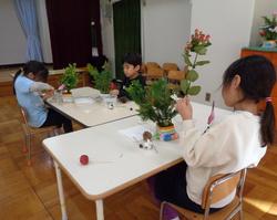 6月11日(水)に年中さくら組と年長すみれ組が、6月27日(金)に年少ちゅうりっぷ組がわくわく生け花を行いました。