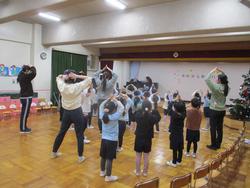 はじめに、学級ごとに分かれて触れ合い遊びやゲームなどを楽しみました。