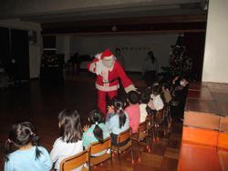 年中さくら組は、劇遊び「どうぶつたちのおむすびころりん」、歌「ゆきのプレゼント」「ホ・ホ・ホ」、合奏「ミッキーマウスマーチ」をしました。友達と声や動きを合わせながら、伸び伸びと表現する姿が見られました。