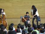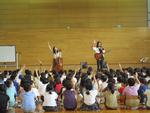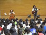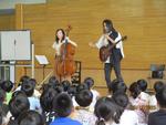 19日(金)、2、3、4年が、体育館で音楽ユニット「エバリー」のお二方によるミニコンサートを鑑賞しました。今回はギター奏者の方とチェロ奏者の方に来ていただき、演奏を聴かせていただきました。音楽を聴くと心がワクワクしたり、元気が出たり、やさしい気持ちになったりします。短い時間でしたが、子どもたちにとって素敵な時間となりました。