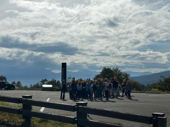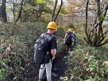 急でぬかるみもある下山コースを、足元泥だらけになって悪戦苦闘しながら、獅子岩駐車場まで降りてきました。バスで学園に向かいます。