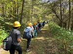 頂上で写真を撮ったら下山です。登りとは違うルートで、森の中の暗い道を降りていきます。前日までの悪天候で道がかなりぬかるんでいました。声を掛け合い、助け合いながら下山しました。