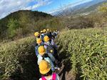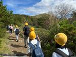 飯盛山登山の報告です。歩き始めて5分もすると「まだですか~」と言い出す子もいましたが、どんどん登っていきます。初めは森の中を歩くので、あまり暑さを感じませんでしたが、森を抜けると日差しが思いの外強く、皆、半袖になりました。ところどころで飯盛山の頂上の標や富士山、盆地が見えて、声をあげていました。