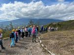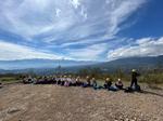 飯盛山頂上近くの広場で弁当を食べた後、クラスごとに頂上に登りました。頂上から向かいの山に向かってみんな揃って「ヤッホ」と声を出して、山彦が返ってくるのを楽しみました。