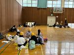 雨模様のため、お弁当は学園の体育館で食べることにしました。これはこれで、非日常です。この後の滝沢牧場での活動は、予定どおりです。