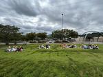 バスは順調に進み、談合坂サービスエリアに着きました。芝生広場で座ったところでちょうど12時のチャイムが鳴りました。ここで昼食です。