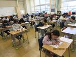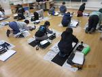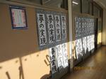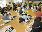 9日(金)、13日(火)とで、学年ごとに席書会を行いました。落ち着いた気持ちで取り組めるよう、静かな環境で心と姿勢を整え、先生から心構えや書き方の指導を受けた後、各自で取り組みます。書き終えたら先生に台紙に貼ってもらい、掲示してもらいます。自分の思うようなよい字が書けたでしょうか。作品は、各教室の廊下に掲示してあります。土曜授業公開日にご覧いただけます。