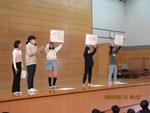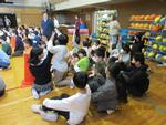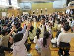 10日(火)に、体育館にかごめ班で集まり、ゲーム集会を行いました。今回はかごめ班をまとめるのも集会の運営も、5年が担っています。ゲームは「先生だれでしょうゲーム」です。担当の集会委員が張り切って、いろいろな先生にインタビューをして作り上げたゲームです。かごめ班で仲良く回答を考え、とても楽しそうでした。